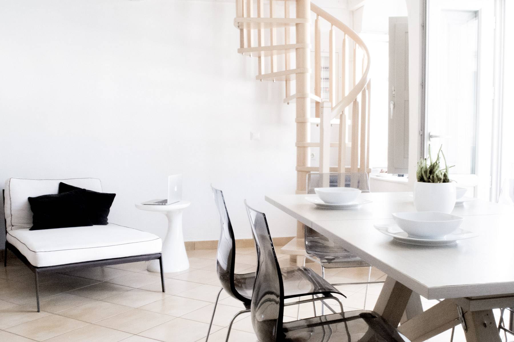 The fully equipped kitchen, a large dining room and the comfortable living room are designed and furnished to provide a high standard stay in a calm ambience.