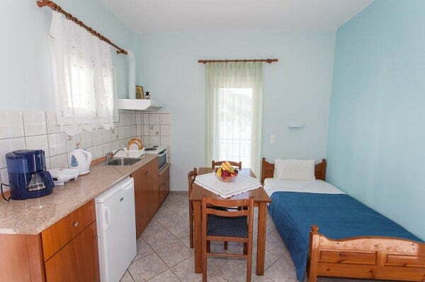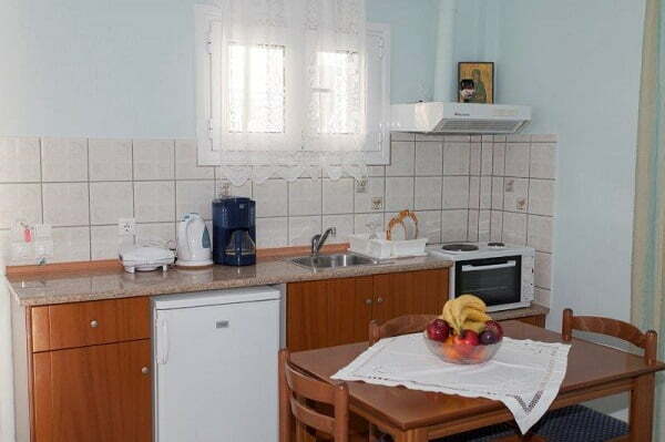 Τα διαμερίσματα μας προσφέρονται και για τετραμελή οικογένεια και διαθέτουν, κουζίνα πλήρως εξοπλισμένη, μαγειρικά σκεύη, μεγάλα μπαλκόνια, μπάνιο – ντουζιέρα Air Condition, τηλεόραση, ψυγείο, δωρεάν Internet.