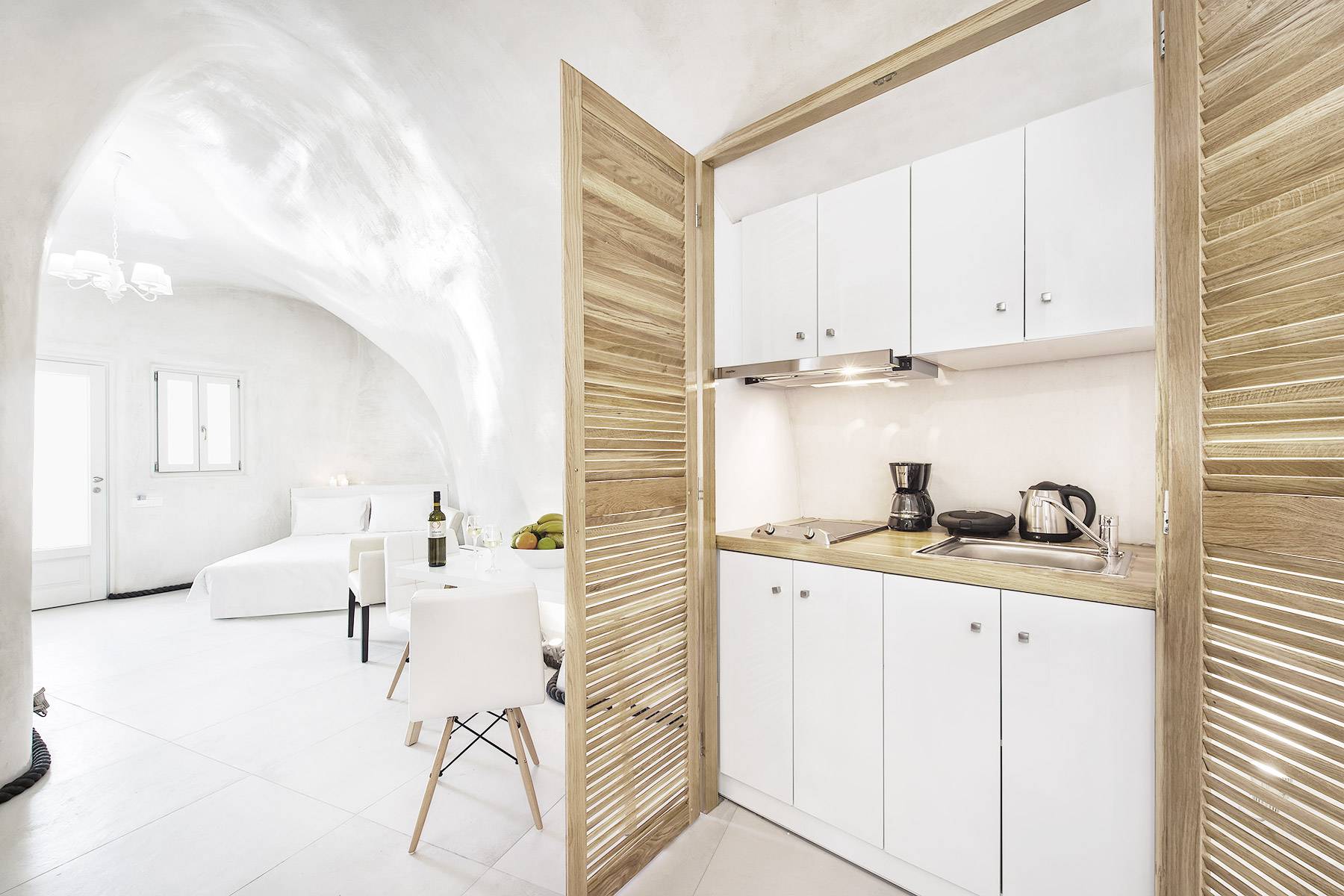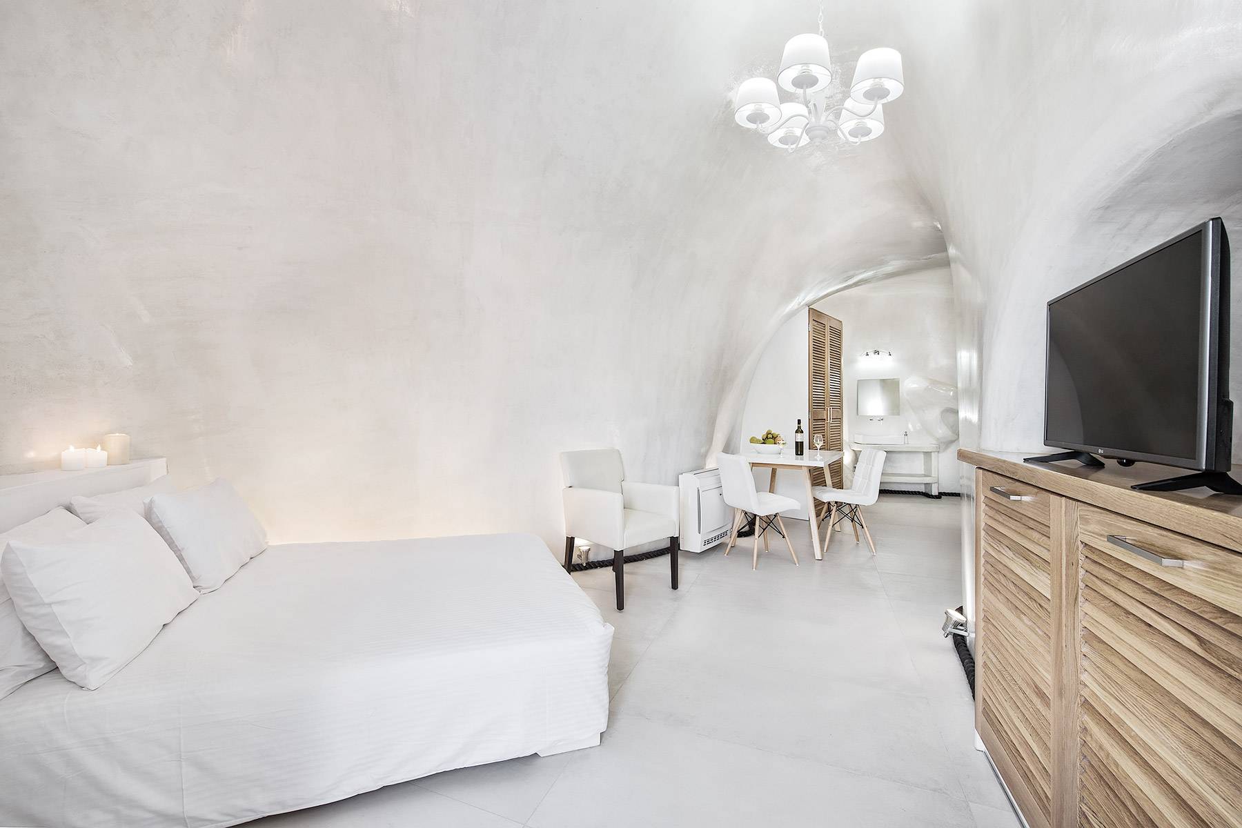 The stylish cave houses are built according to the unique architectural technique of the island’s villages. They are carefully designed to become one with the rocky cliffs externally and provide comfort and elegance internally. Each private residence can accommodate 2 to 4 persons.