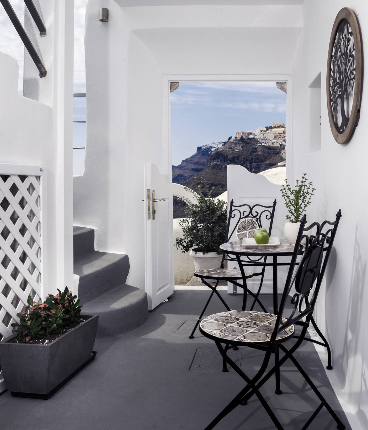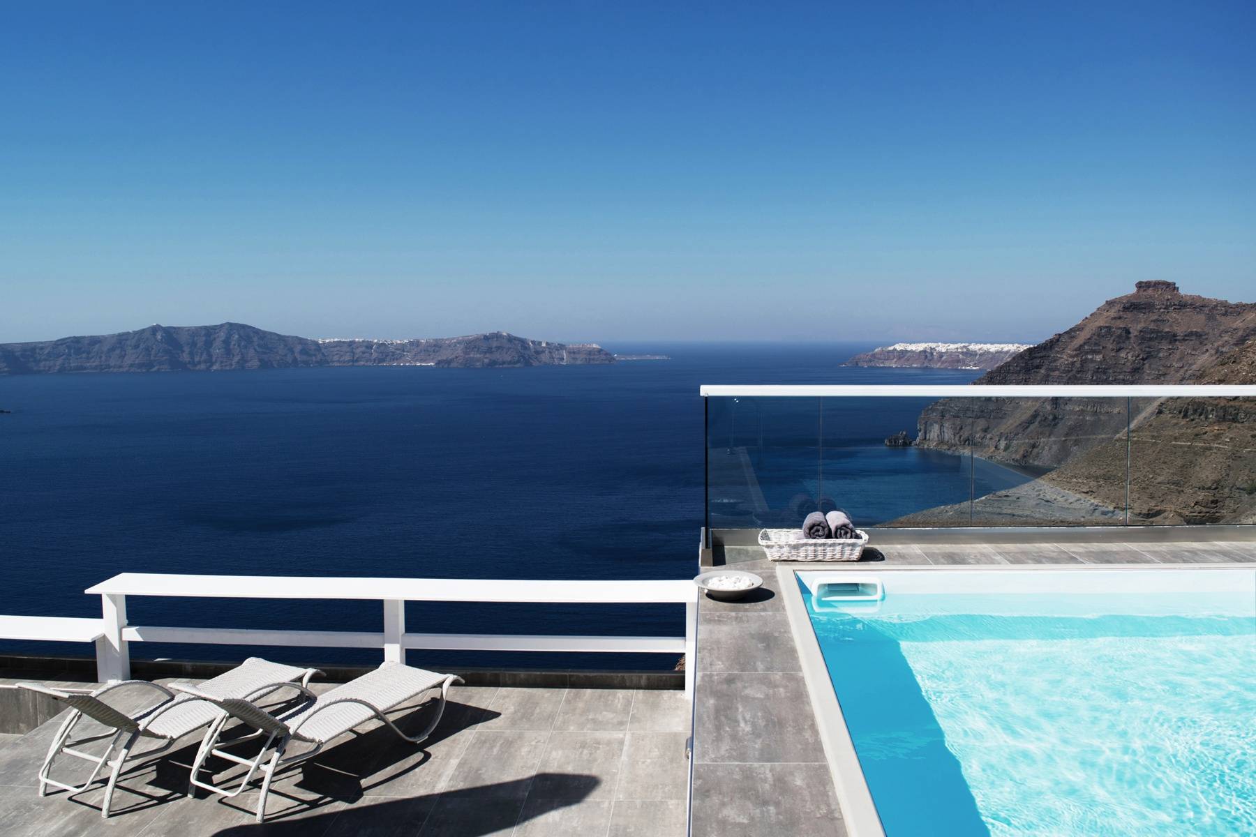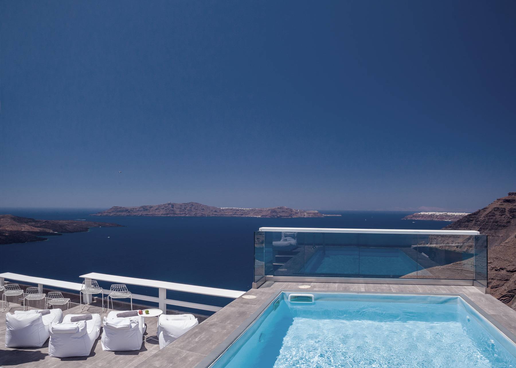 Each private balcony is designed to provide an unobstructed view to the sea, the caldera and the volcano, making it possible for every guest not only to gaze at the amazing scenery, but to feel like being a part of it.