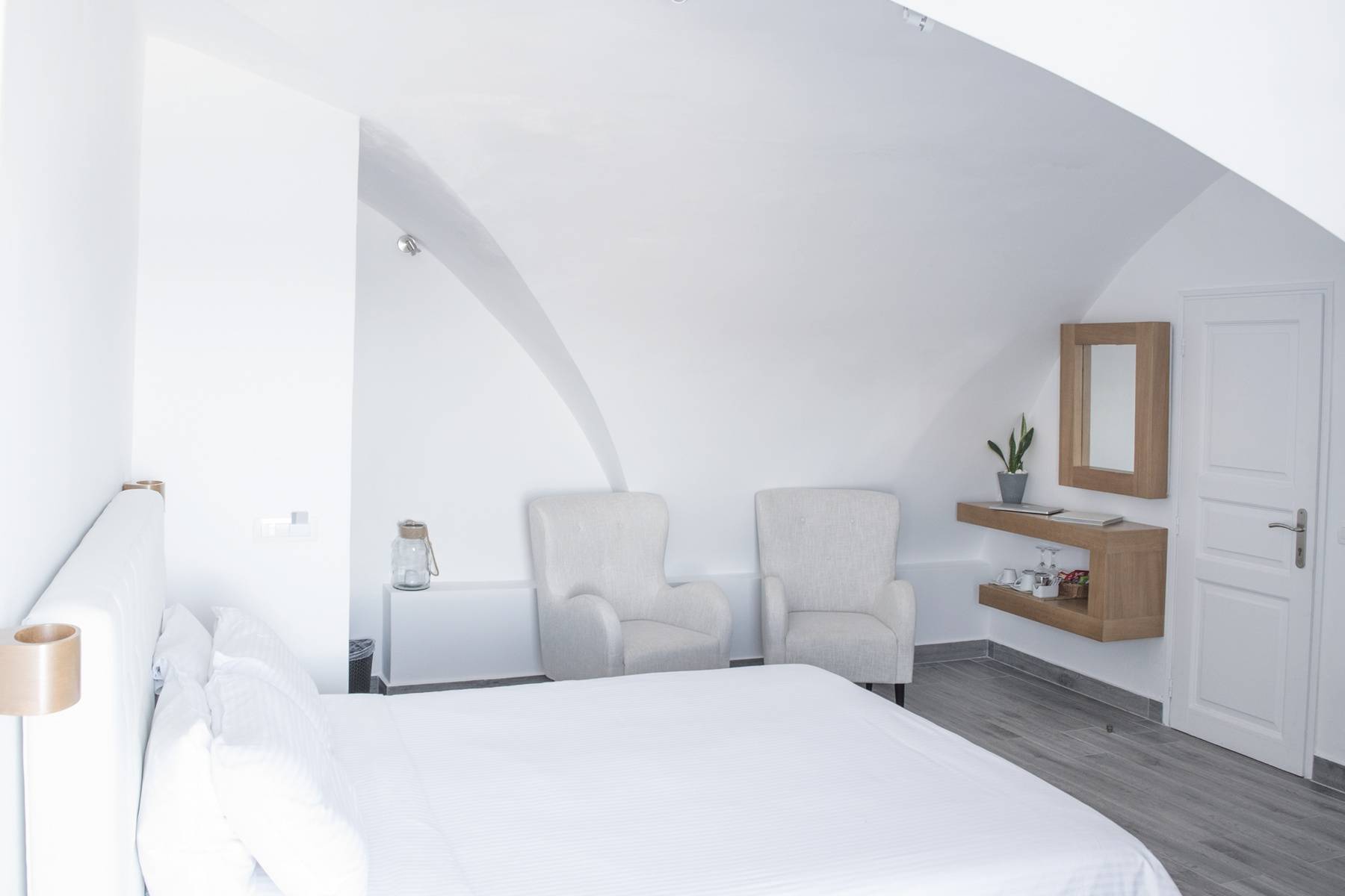 Set in Fira, the capital town of the island, the boutique hotel is at a walking distance from the lively traditional roads of the town centre, but in a quiet privileged area which offers one of the best views of the island.